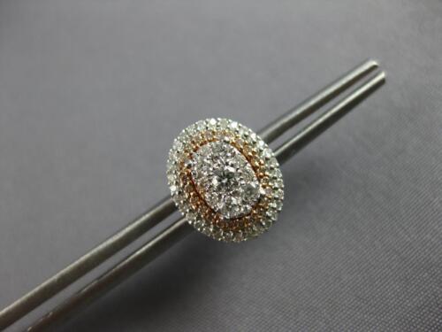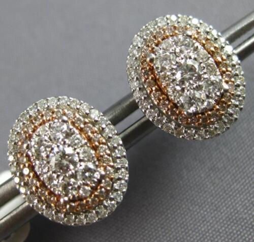 LARGE .69CT DIAMOND 14KT 2 TONE GOLD 3D CLUSTER OVAL DOUBLE HALO STUD EARRINGS