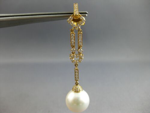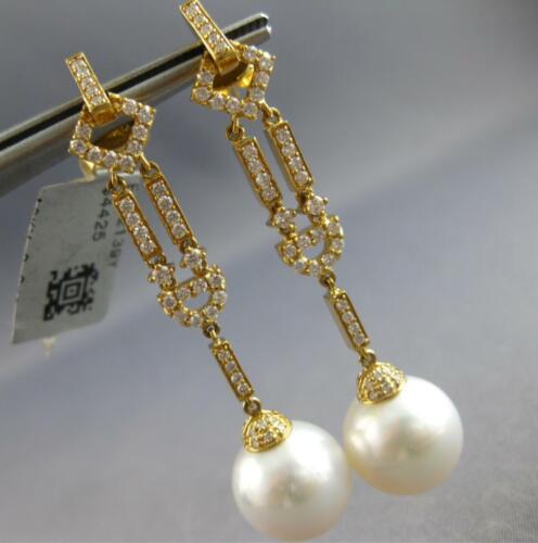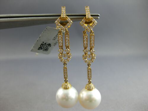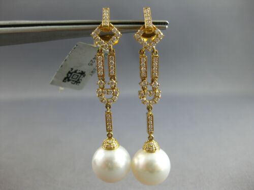 LARGE 18KT YELLOW GOLD HANGING EARRINGS. 3D MULTI SHAPE CHANDELIER DESIGN. DIAMONDS ARE F/G COLOR, VSSI CLARITY .69 CARATS. FEATURES AAA SOUTH SEA PEARL. PEARLS MEASURE 11.8mm WIDE. EARRINGS MEASURE 51.7mm X 11.8mm. WRITTEN APPRAISAL AVAILABLE. COMES IN A PRESENTABLE GIFT BOX.