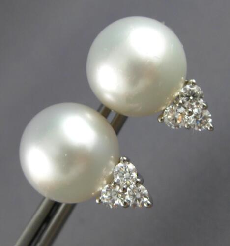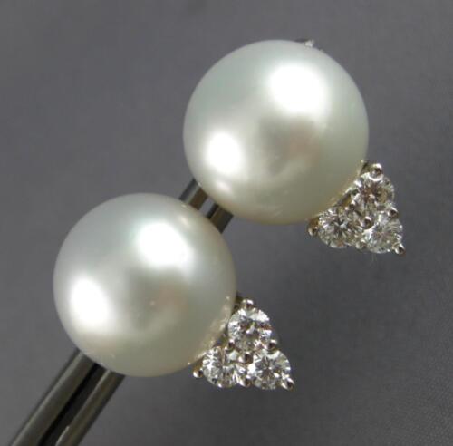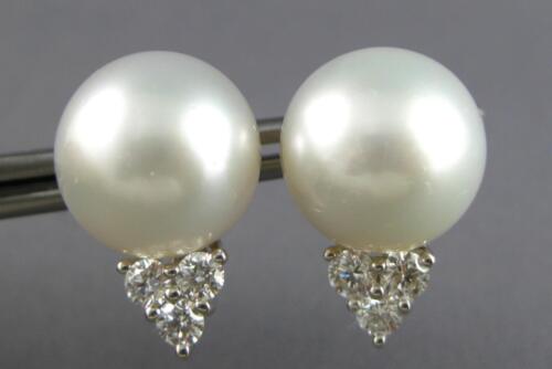 LARGE .6CT DIAMOND & AAA SOUTH SEA PEARL 18K WHITE GOLD TRIANGULAR STUD EARRINGS
