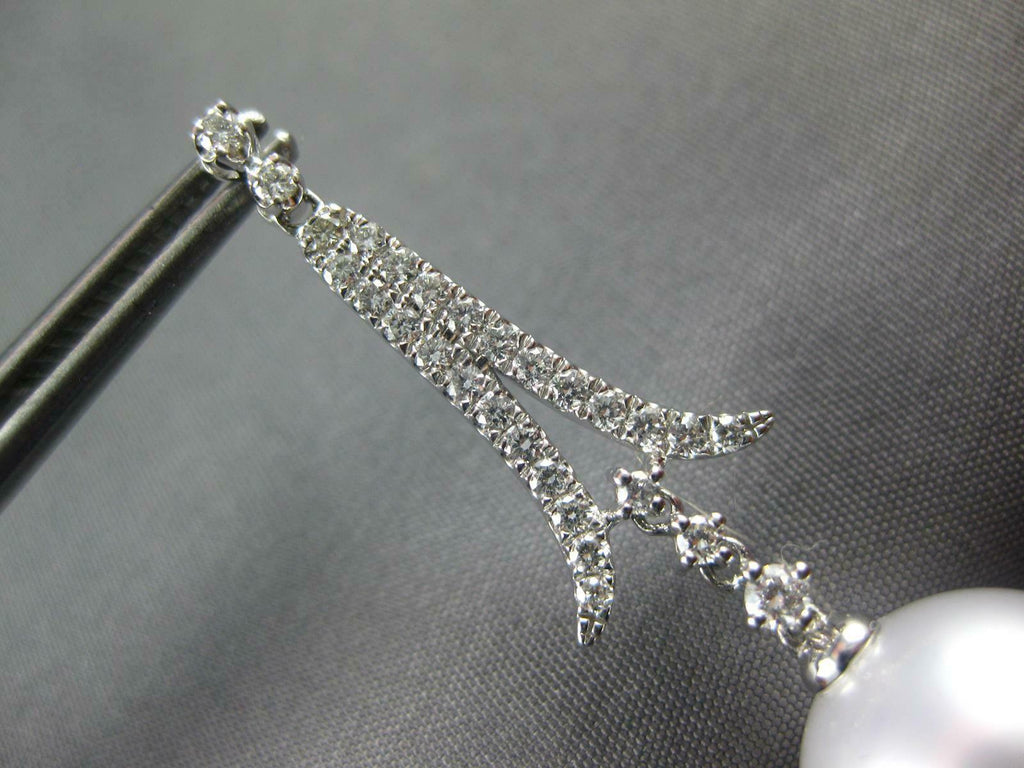 LARGE .6CT DIAMOND & AAA SOUTH SEA PEARL 18K WHITE GOLD V SHAPE HANGING EARRINGS