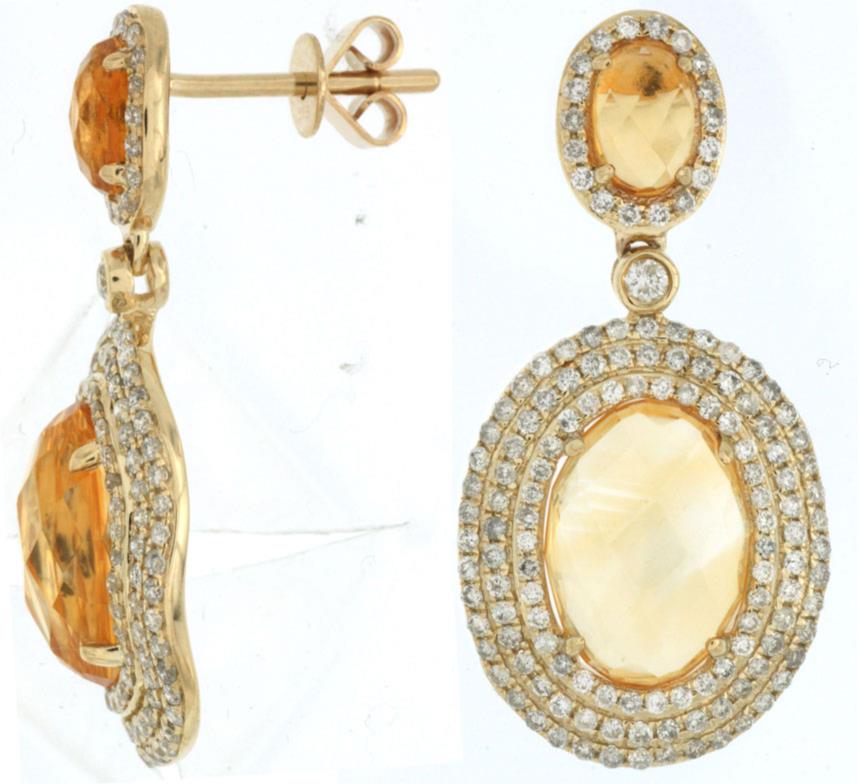 LARGE 7.05CT DIAMOND & AAA CITRINE 14K YELLOW GOLD OVAL & ROUND HANGING EARRINGS