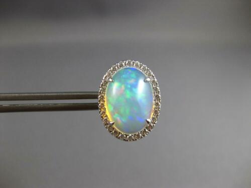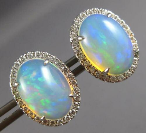 LARGE 7.23CT DIAMOND & AAA AUSTRALIAN OPAL 14KT WHITE GOLD 3D OVAL STUD EARRINGS