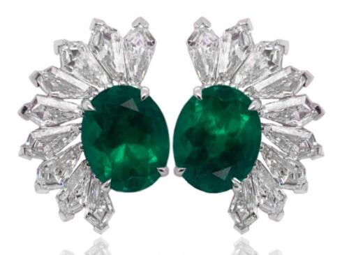 LARGE 7.68CT DIAMOND & AAA EMERALD 18KT WHITE GOLD 3D CLIP ON HANGING EARRINGS