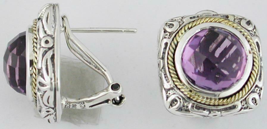 LARGE 14KT YELLOW GOLD AND 925 STERLING SILVER CLIP ON HANGING EARRINGS. 3D SQUARE DESIGN. AAA EXTRA FACETED AMETHYSTS ARE 7.80 CARATS. WRITTEN APPRAISAL AVAILABLE. COMES IN A PRESENTABLE GIFT BOX.