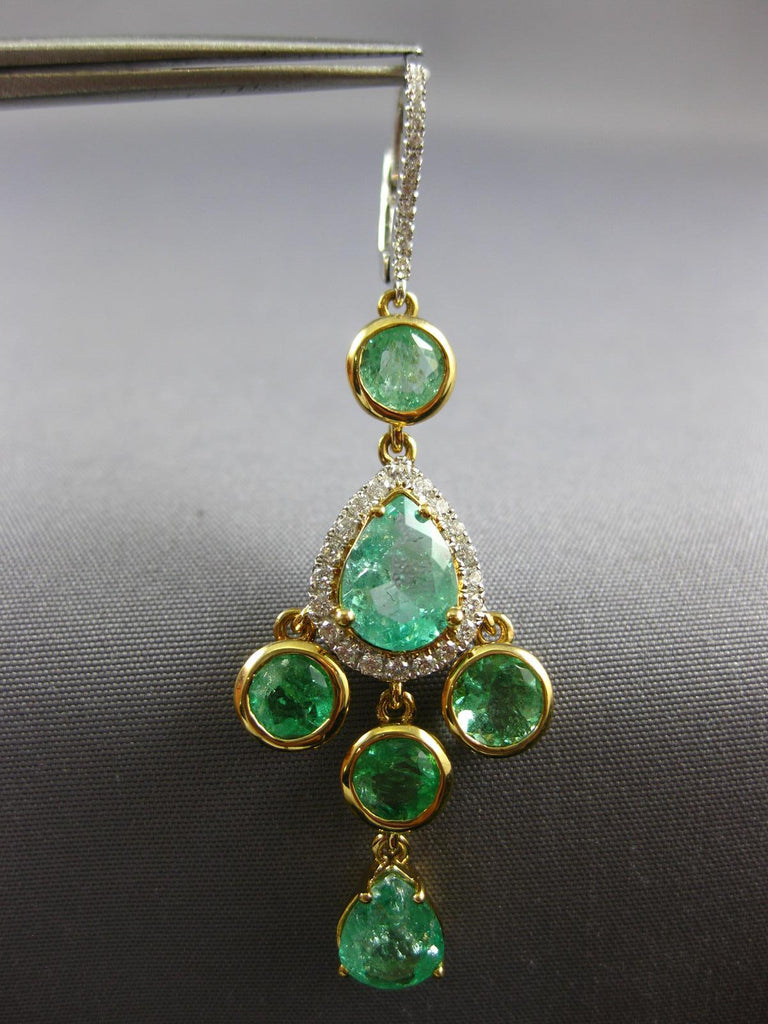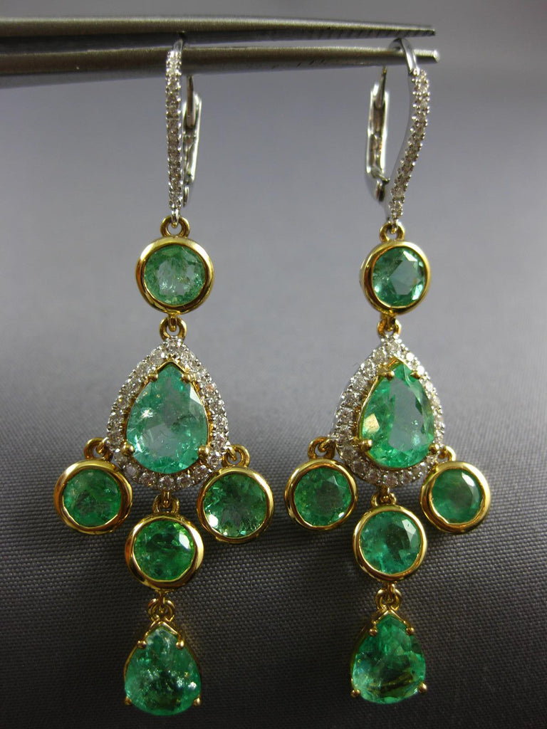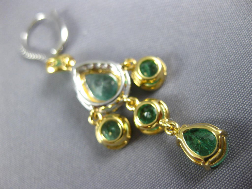 LARGE 7.16CT DIAMOND & AAA EMERALD 18K TRI COLOR GOLD LEVERBACK HANGING EARRINGS