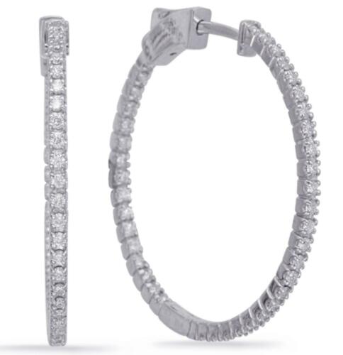 LARGE 14KT WHITE GOLD HOOP HANGING EARRINGS. 3D CLASSIC INSIDE OUT DESIGN. ROUND DIAMONDS ARE F/G COLOR, VSSI CLARITY .72 CARATS. MEASURES 2mm WIDE. WRITTEN APPRAISAL AVAILABLE. COMES IN A PRESENTABLE GIFT BOX.