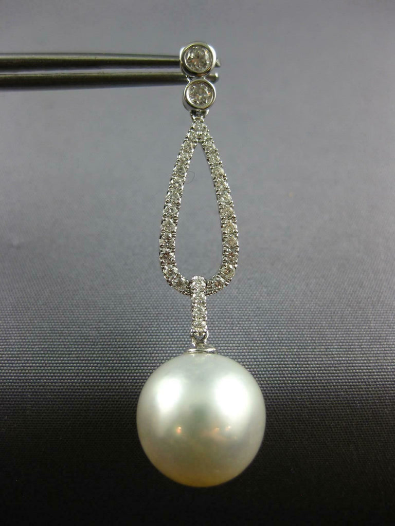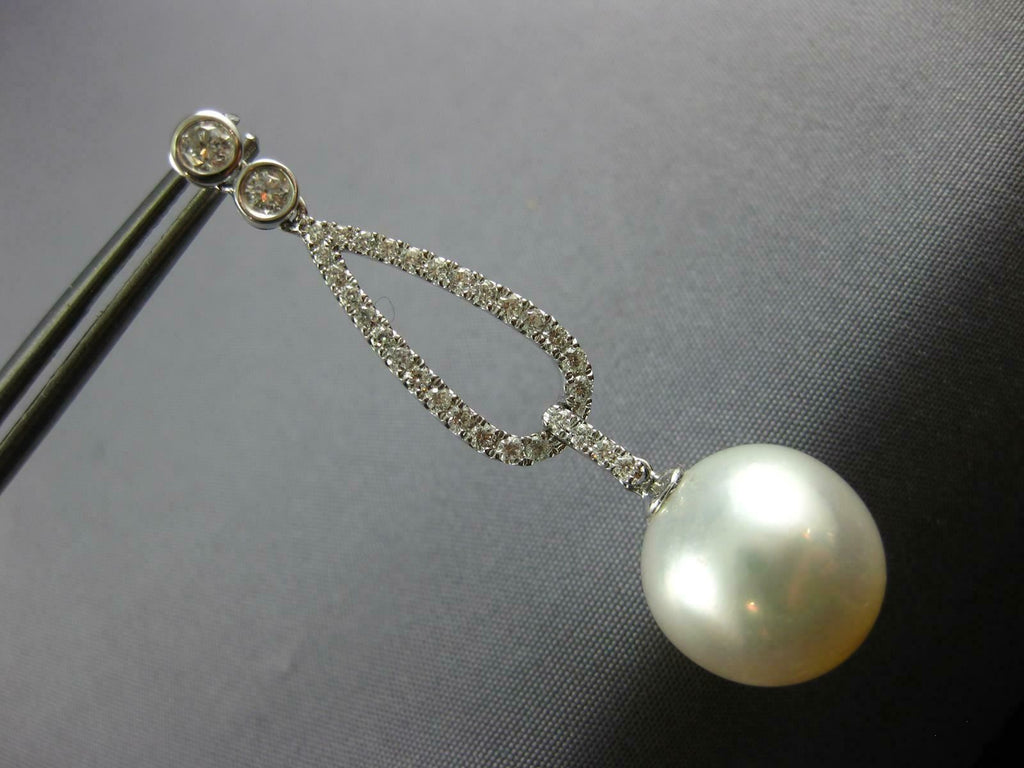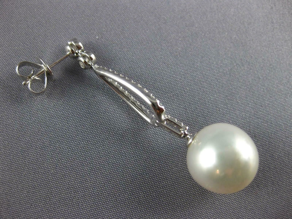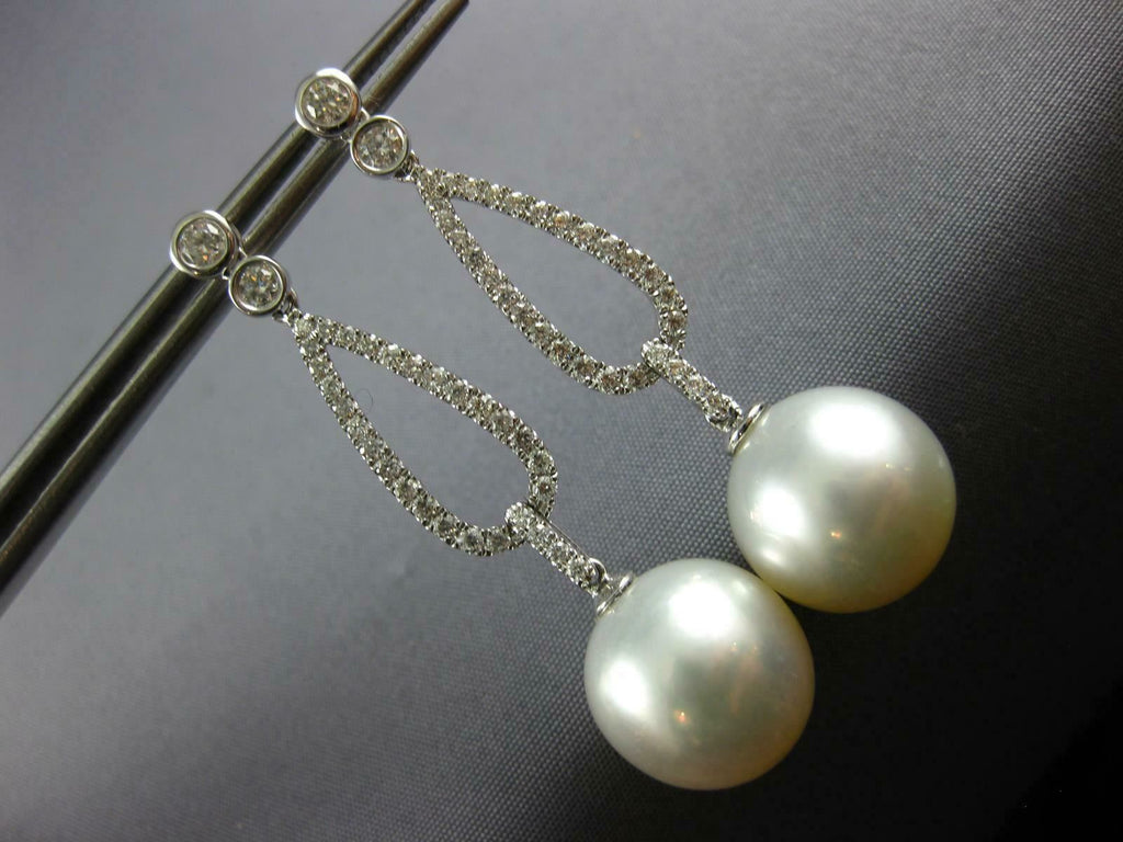 LARGE .78CT DIAMOND & AAA SOUTH SEA PEARL 18K WHITE GOLD ETOILE HANGING EARRINGS