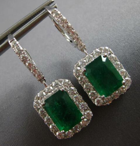 LARGE 7CT DIAMOND & AAA EMERALD 18KT WHITE GOLD 3D OCTAGON HALO HANGING EARRINGS