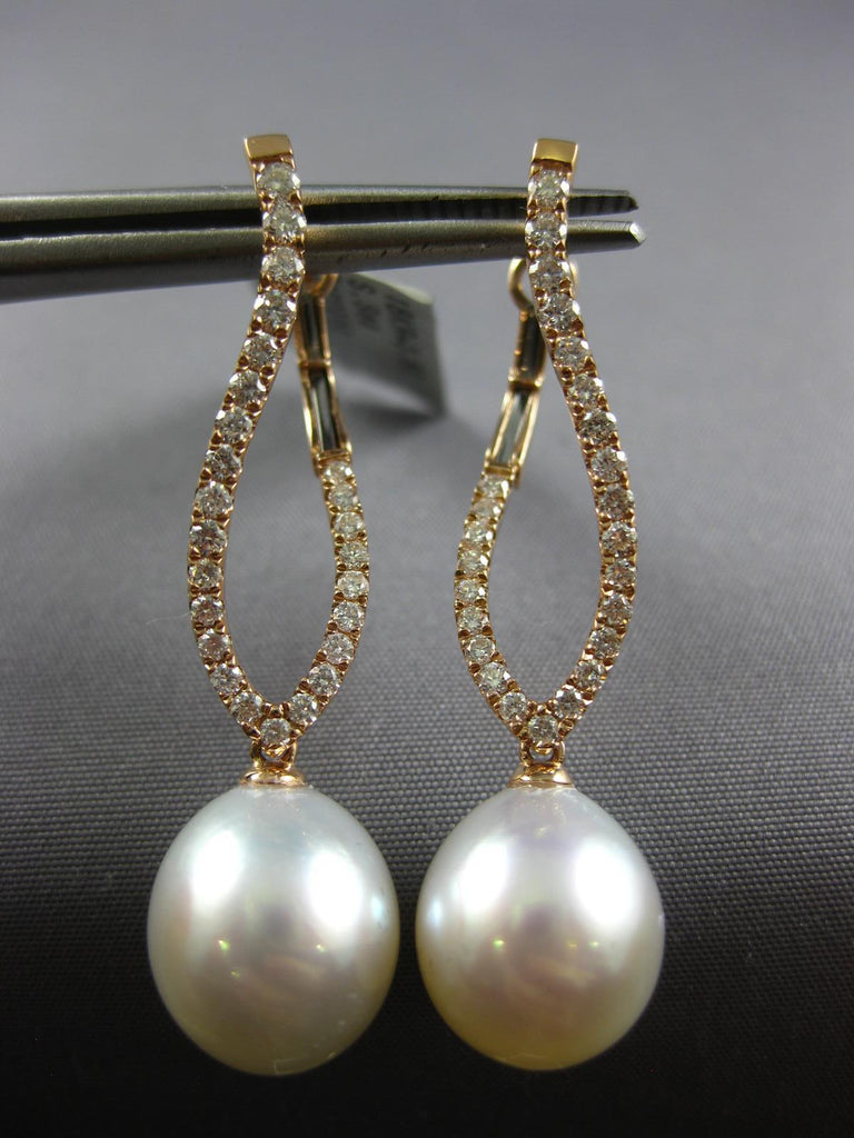 LARGE .7CT DIAMOND & AAA SOUTH SEA PEARL 18K ROSE GOLD INFINITY HANGING EARRINGS