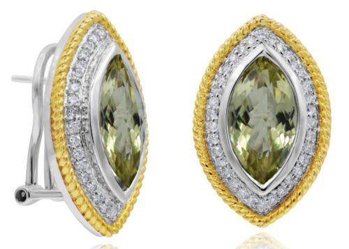 LARGE 8.37CT DIAMOND & AAA LEMON QUARTZ 14KT 2 TONE GOLD HALO FILIGREE EARRINGS