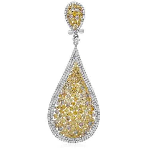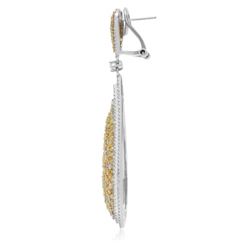 LARGE 8.55CT MULTI COLOR DIAMOND 18KT TWO TONE GOLD TEAR DROP HANGING EARRINGS