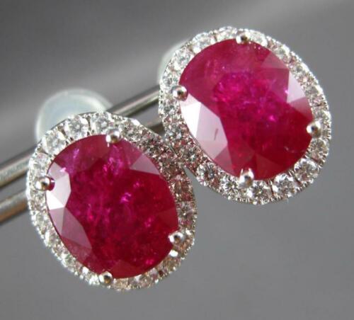 LARGE 8.69CT DIAMOND & AAA RUBY 18KT WHITE GOLD 3D OVAL & ROUND CLIP ON EARRINGS