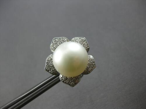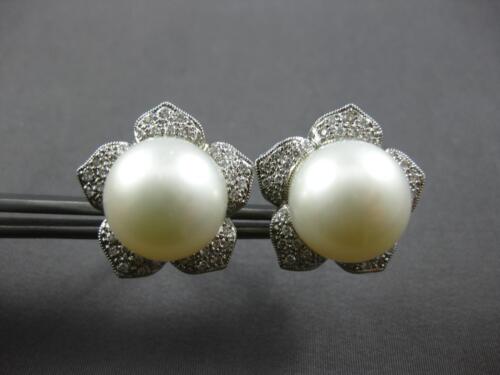 LARGE .80CT DIAMOND & AAA SOUTH SEA PEARL 18K WHITE GOLD FLOWER CLIP ON EARRINGS