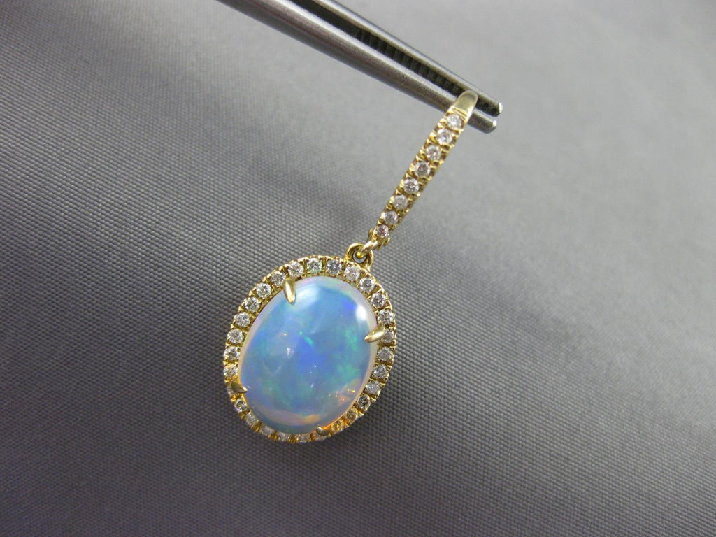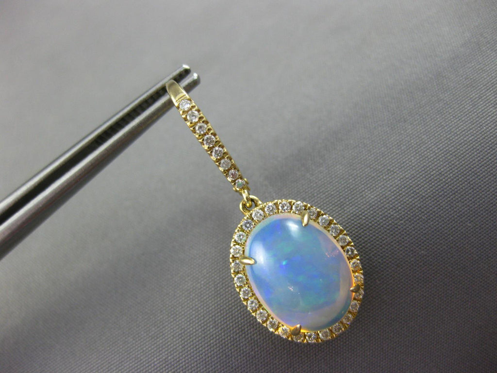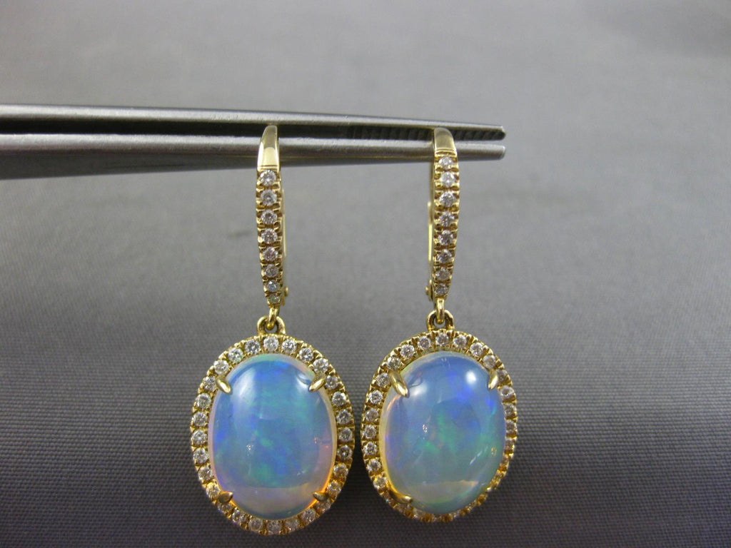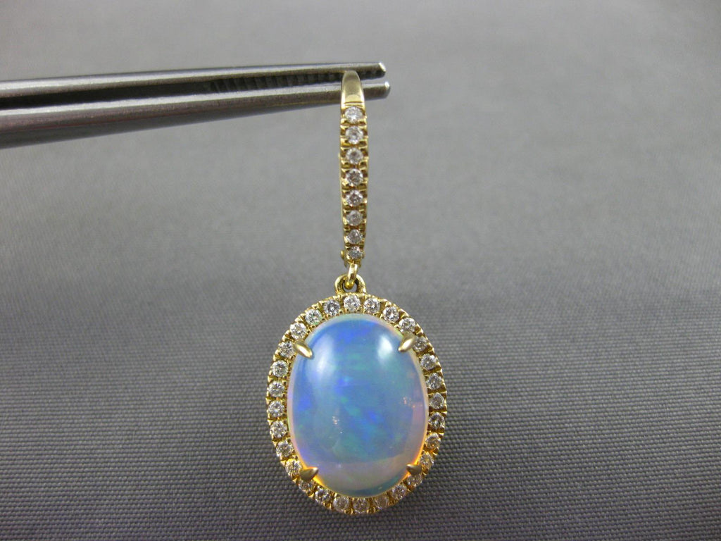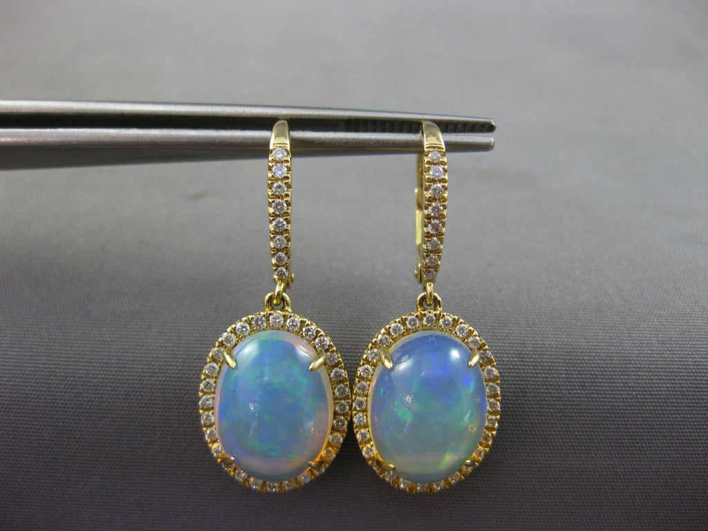 LARGE 8.13CT DIAMOND & AAA OPAL 14KT YELLOW GOLD 3D OVAL HALO HANGING EARRINGS