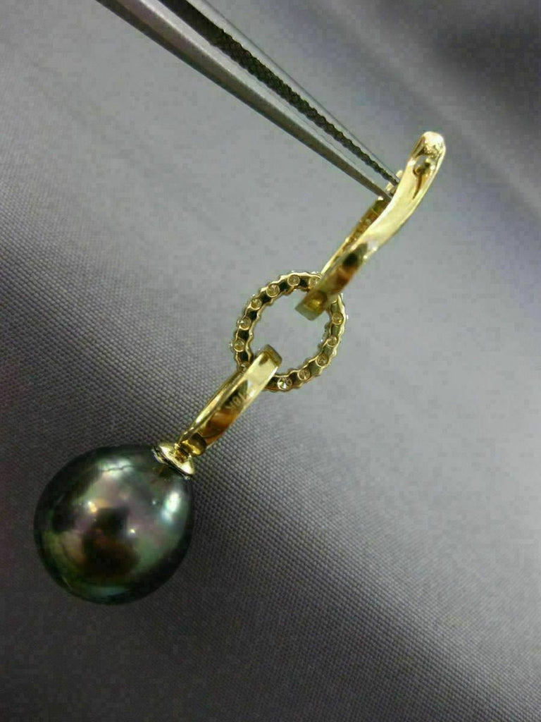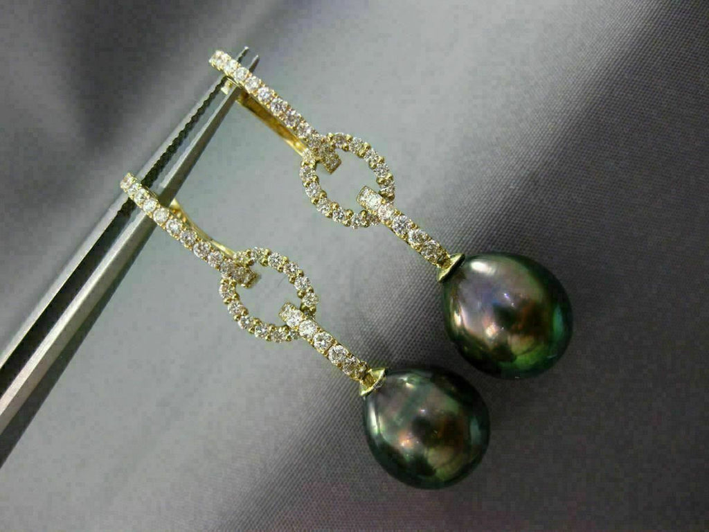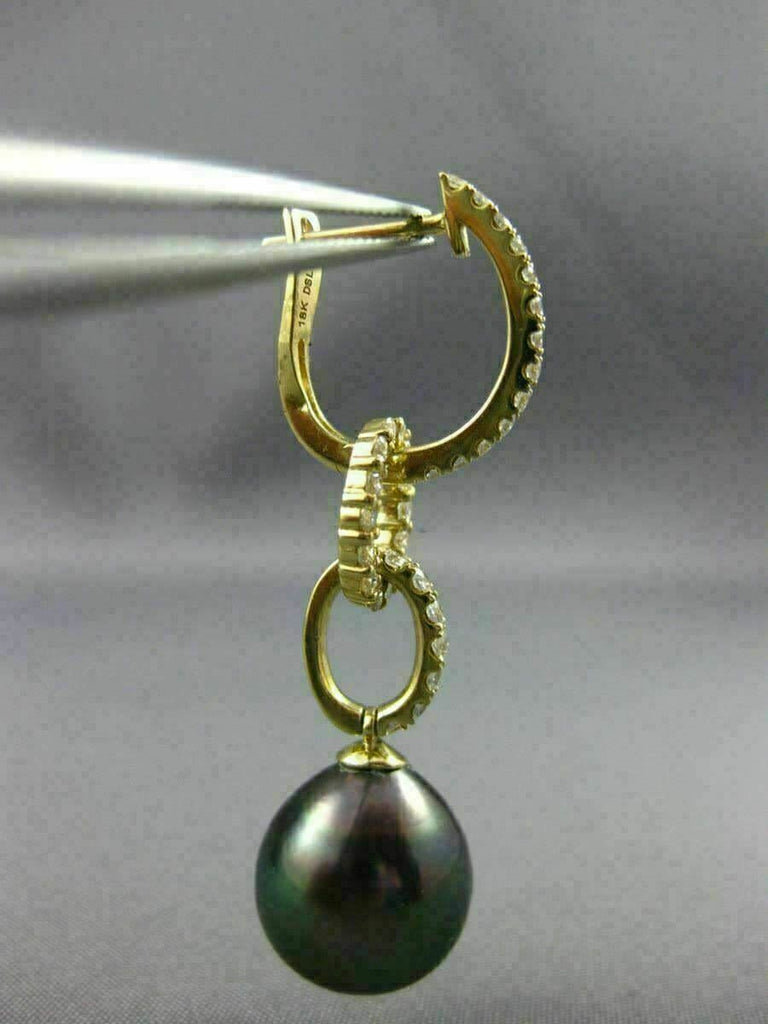LARGE .81CT DIAMOND & AAA TAHITIAN PEARL 18K YELLOW GOLD OVAL TEAR DROP EARRINGS