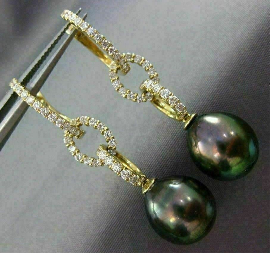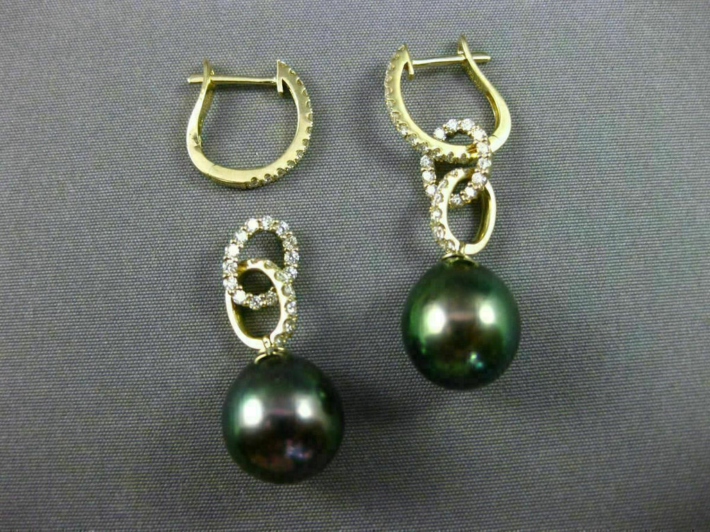 LARGE 18KT YELLOW GOLD EARRINGS. 3D OVAL TEAR DROP DESIGN. DIAMONDS ARE F/G COLOR, VSSI CLARITY .81 CARATS. FEATURES AAA 11MM TAHITIAN PEARLS. MEASURES 41MM X 11MM WIDE. WRITTEN APPRAISAL AVAILABLE. COMES IN A PRESENTABLE GIFT BOX.