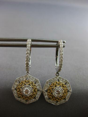 LARGE 14KT WHITE AND YELLOW GOLD HANGING EARRINGS. 3D FILIGREE MILGRAIN MULTI HEART CIRCULAR STAR DESIGN. DIAMONDS ARE F/G COLOR, VSSI CLARITY .83 CARATS. MEASURES 32mm X 14.5mm. WRITTEN APPRAISAL AVAILABLE. COMES IN A PRESENTABLE GIFT BOX.