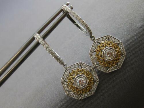 LARGE .83CT DIAMOND 14KT 2 TONE GOLD FILIGREE MILTI HEART STAR HANGING EARRINGS