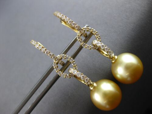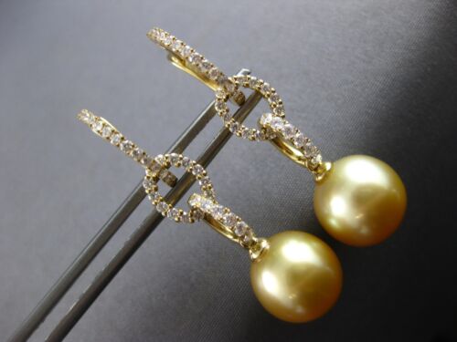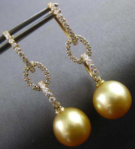 LARGE .84CT DIAMOND & AAA GOLDEN SOUTH SEA PEARL 18K WHITE GOLD HANGING EARRINGS