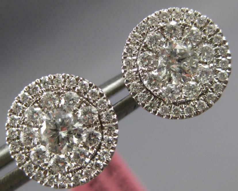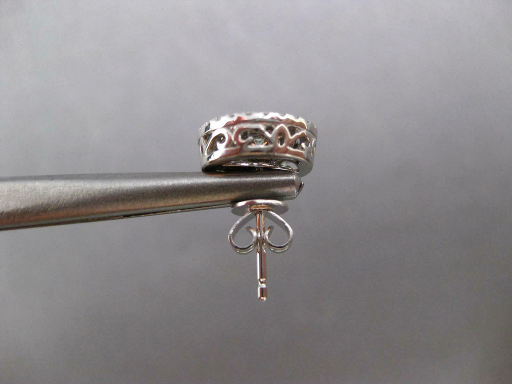LARGE 14KT WHITE GOLD INTERCHANGEABLE JACKET STUD EARRINGS. 3D FLOWER FILIGREE DESIGN. DIAMONDS ARE F/G COLOR, VSSI CLARITY. TWO CENTER DIAMONDS ARE .40 CARATS. SIDE DIAMONDS ARE .45 CARATS. MEASURES 10MM WIDE. WRITTEN APPRAISAL AVAILABLE. COMES IN A PRESENTABLE GIFT BOX.