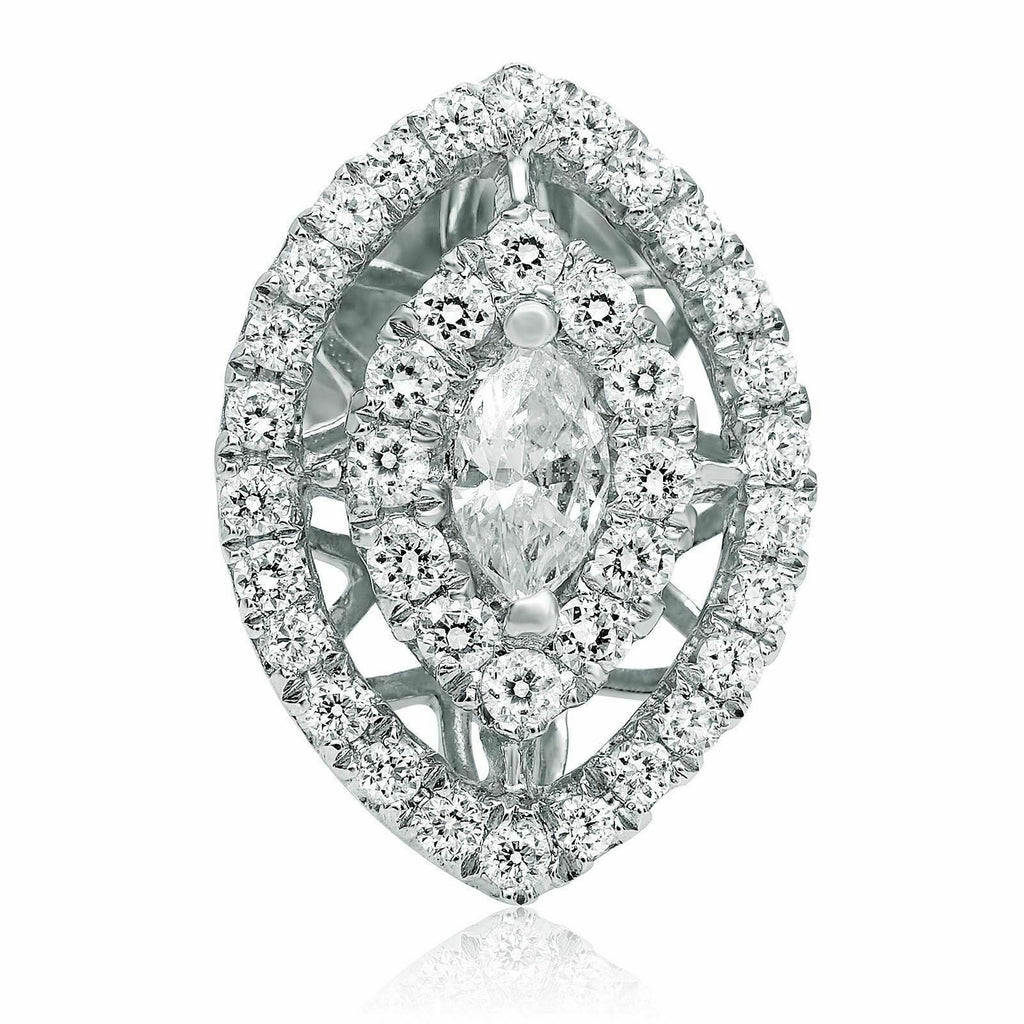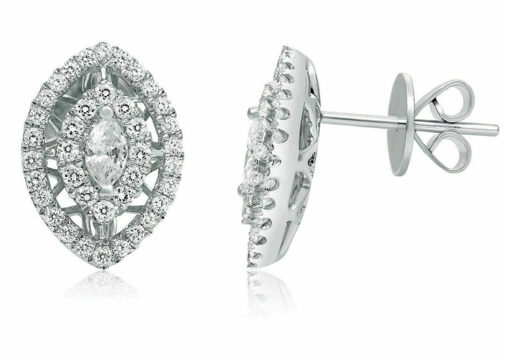 LARGE .87CT ROUND & MARQUISE DIAMOND 14K WHITE GOLD TEAR DROP HALO STUD EARRINGS