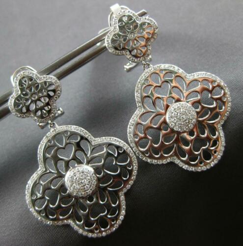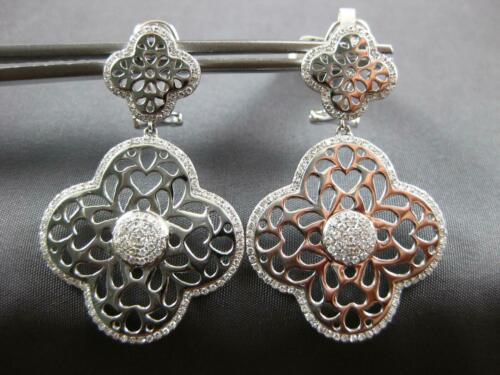 LARGE .88CT DIAMOND 14KT WHITE GOLD 3D FILIGREE 4 LEAF CLOVER FLOWER EARRINGS