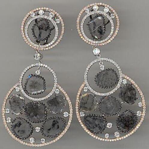 LARGE 9.64CT WHITE & SLICE DIAMOND 18KT 2 TONE GOLD FUN CLIP ON HANGING EARRINGS