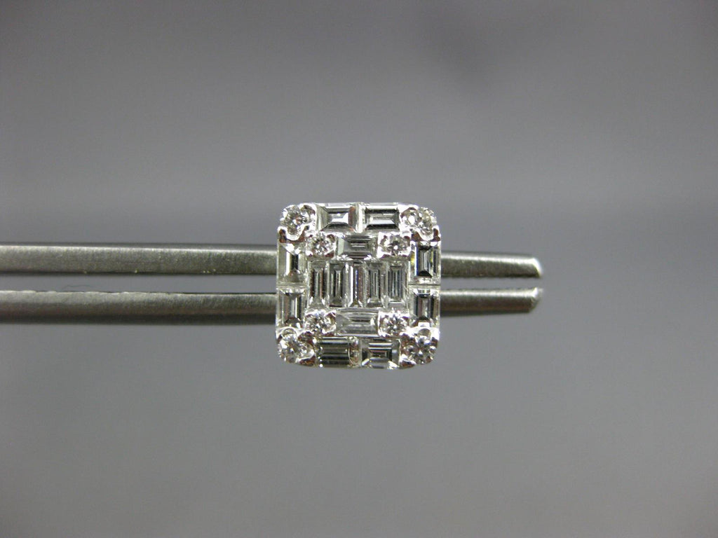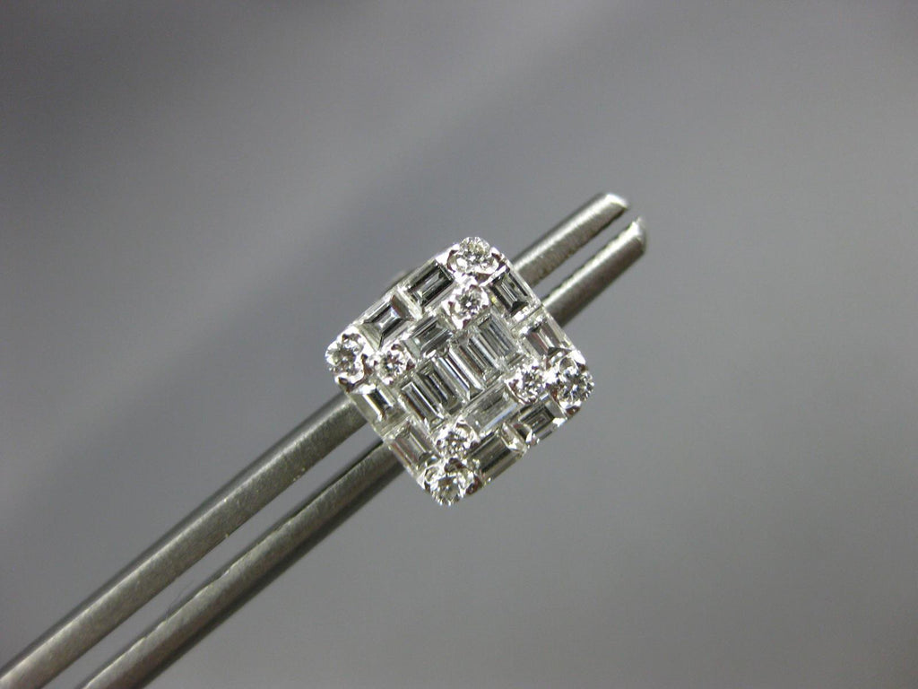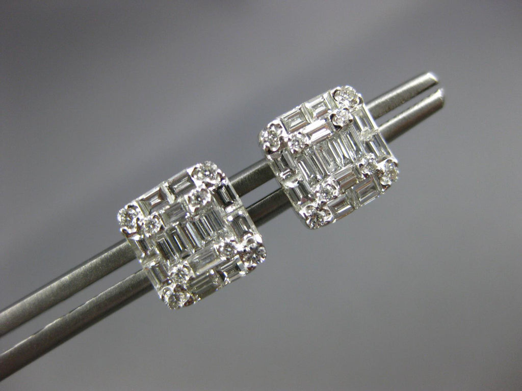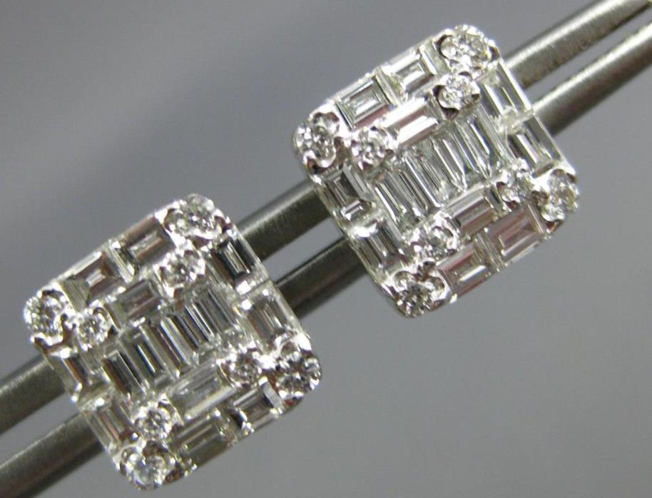 LARGE .95CT DIAMOND 18K WHITE GOLD ROUND & BAGUETTE CLUSTER SQUARE STUD EARRINGS