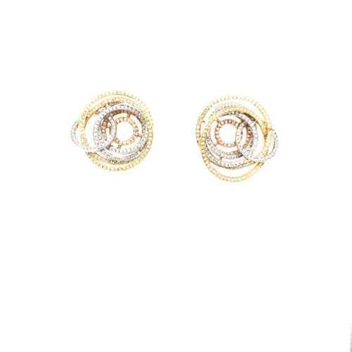 LARGE .99CT DIAMOND 18K TRI COLOR GOLD 3D MULTI CIRCULAR LOVE KNOT STUD EARRINGS