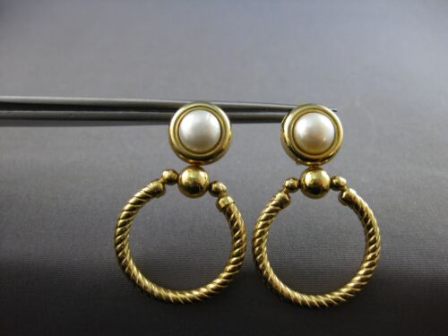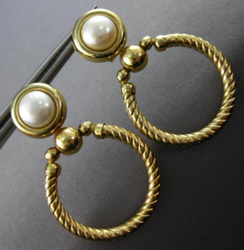 LARGE AAA PEARL 14KT YELLOW GOLD CIRCULAR FILIGREE FUN CLIP ON HANGING EARRINGS