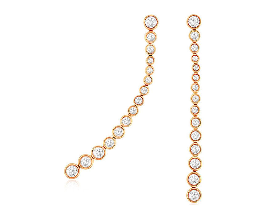 LONG 1.0CT DIAMOND 14KT ROSE GOLD 3D BEZEL GRADUATING JOURNEY HANGING EARRINGS