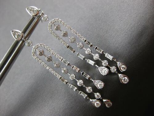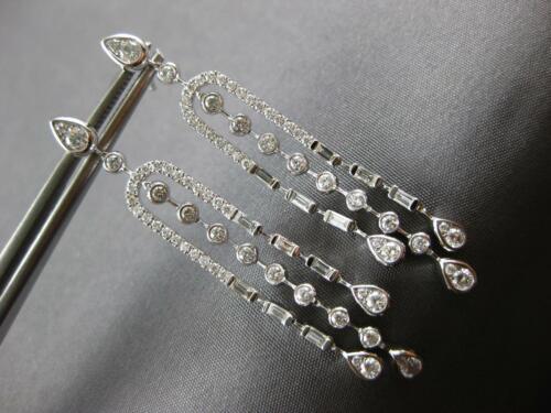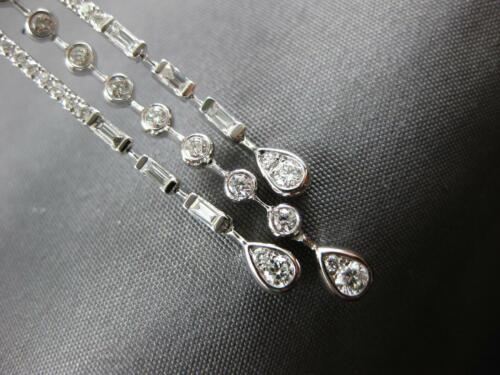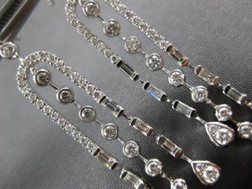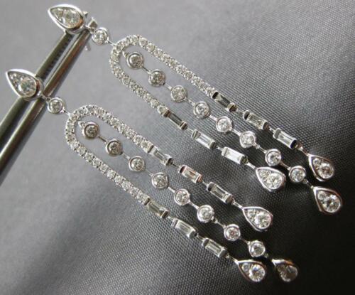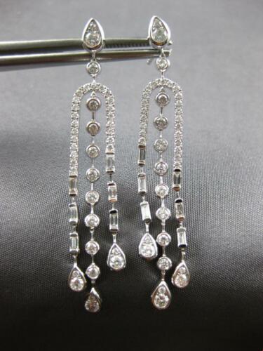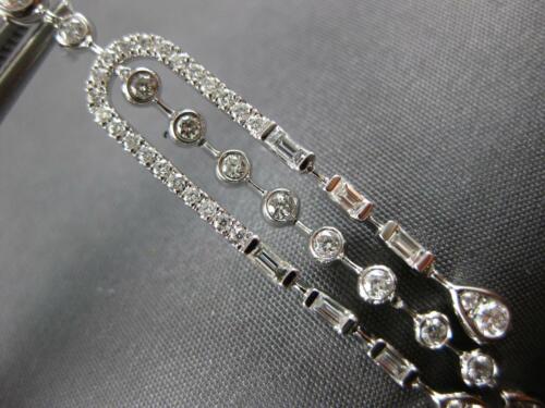 LONG 14KT WHITE GOLD HANGING EARRINGS. 3D THREE ROW HORSESHOE DESIGN. DIAMONDS ARE F/G COLOR, VSSI CLARITY. ROUND DIAMONDS ARE .96 CARATS. BAGUETTE DIAMONDS ARE .29 CARATS. MEASURES 48mm X 7mm. WRITTEN APPRAISAL AVAILABLE. COMES IN A PRESENTABLE GIFT BOX.
