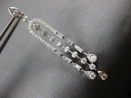 LONG 1.25CT DIAMOND 14KT WHITE GOLD ROUND & BAGUETTE HORSESHOE HANGING EARRINGS