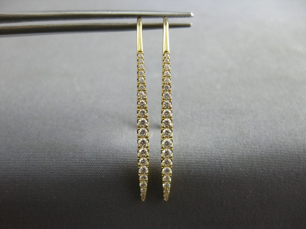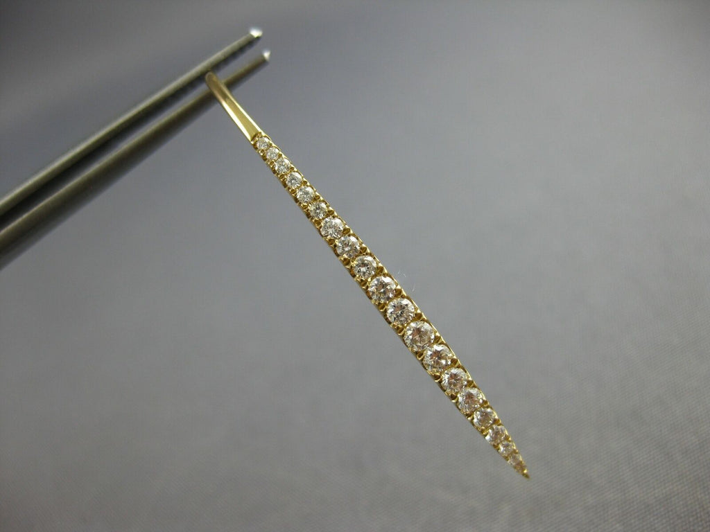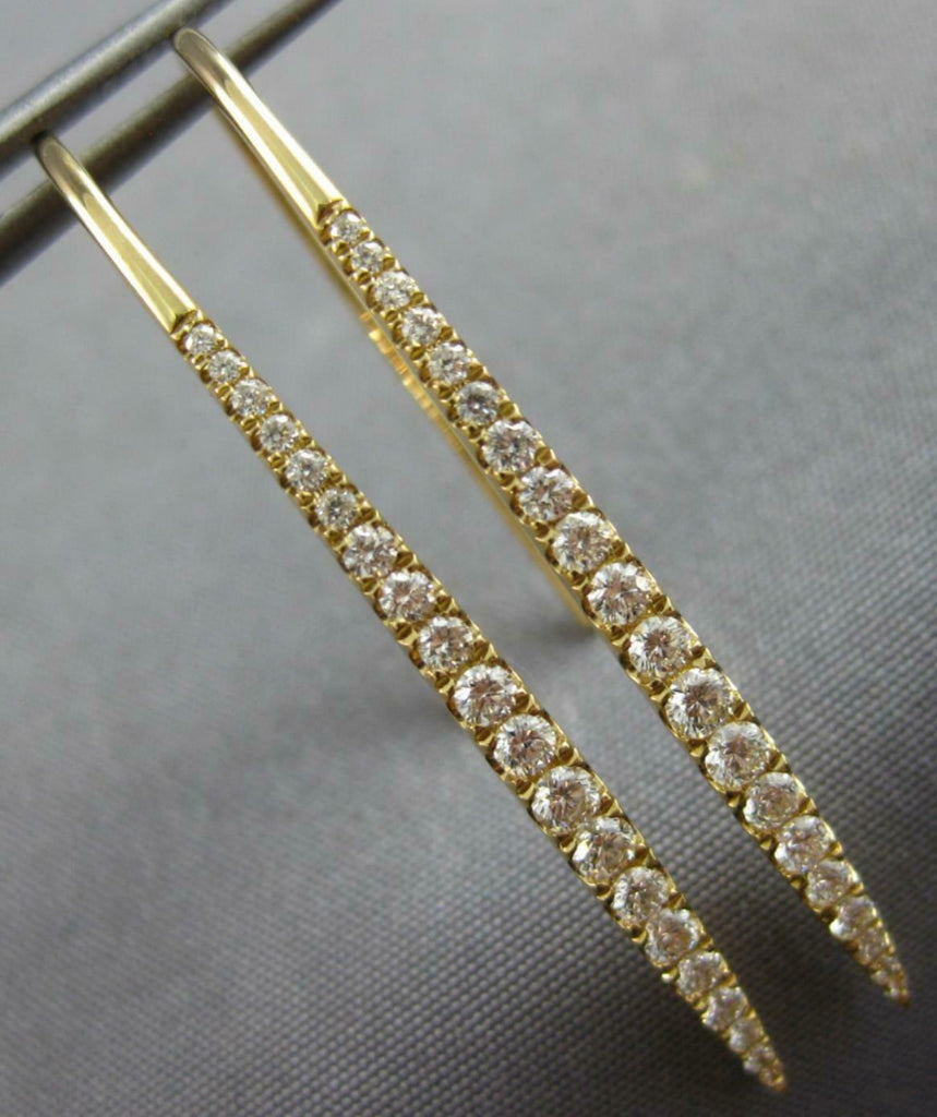 LONG 18KT YELLOW GOLD FUN LEVERBACK HANGING EARRINGS. 3D JOURNEY DESIGN. ROUND DIAMONDS ARE F/G COLOR, VSSI CLARITY .58 CARATS. MEASURES 38.8MM X 2.3MM. WRITTEN APPRAISAL AVAILABLE. COMES IN A PRESENTABLE GIFT BOX.