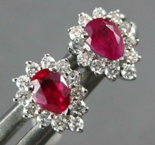 SMALL .48CT DIAMOND & AAA RUBY 14KT WHITE GOLD 3D PEAR SHAPE HALO STUD EARRINGS