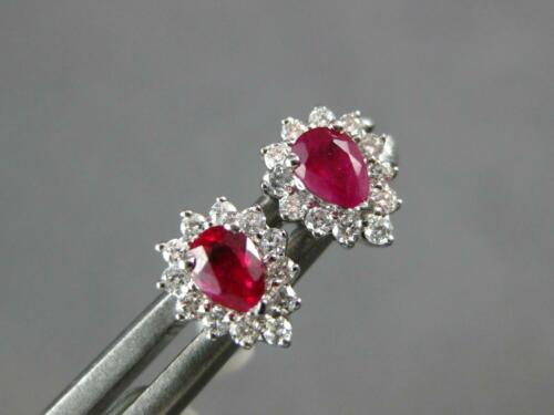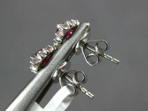 SMALL 14KT WHITE GOLD STUD EARRINGS. 3D HALO CLASSIC DESIGN. ROUND DIAMONDS ARE F/G COLOR, VSSI CLARITY .15 CARATS. AAA PEAR SHAPE RUBIES ARE .33 CARATS. MEASURES 7mm WIDE. WRITTEN APPRAISAL AVAILABLE. COMES IN A PRESENTABLE GIFT BOX.