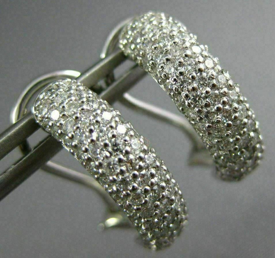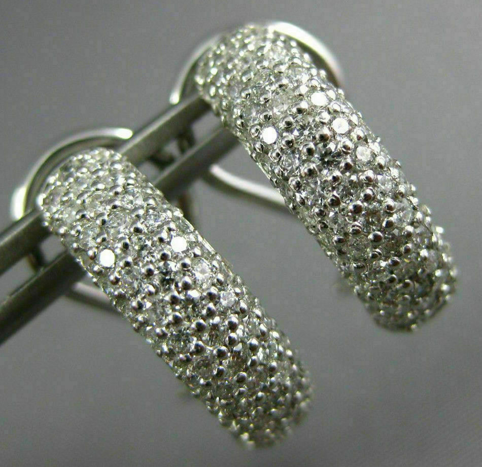 ESTATE WIDE 14KT WHITE GOLD HOOP CLIP ON EARRINGS. 3D MULTI ROW CLASSIC SEMI HOOP DESIGN. DIAMONDS ARE F/G COLOR, VSSI CLARITY .80 CARATS. WRITTEN APPRAISAL AVAILABLE. COMES IN A PRESENTABLE GIFT BOX.