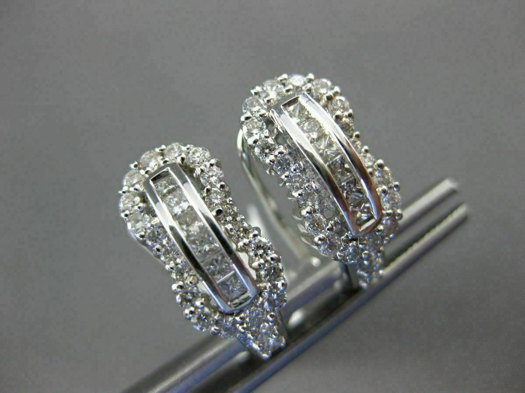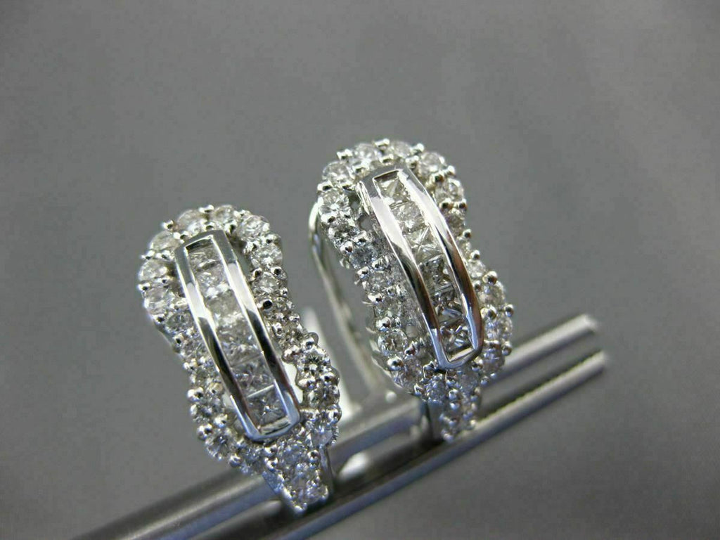 WIDE 14KT WHITE GOLD CLIP ON HANGING EARRINGS. 3D LOVE KNOT DESIGN. ROUND & PRINCESS CUT DIAMONDS ARE F/G COLOR, VSSI CLARITY 1.36 CARATS. MEASURES 15mm X 6mm. WRITTEN APPRAISAL AVAILABLE. COMES IN A PRESENTABLE GIFT BOX