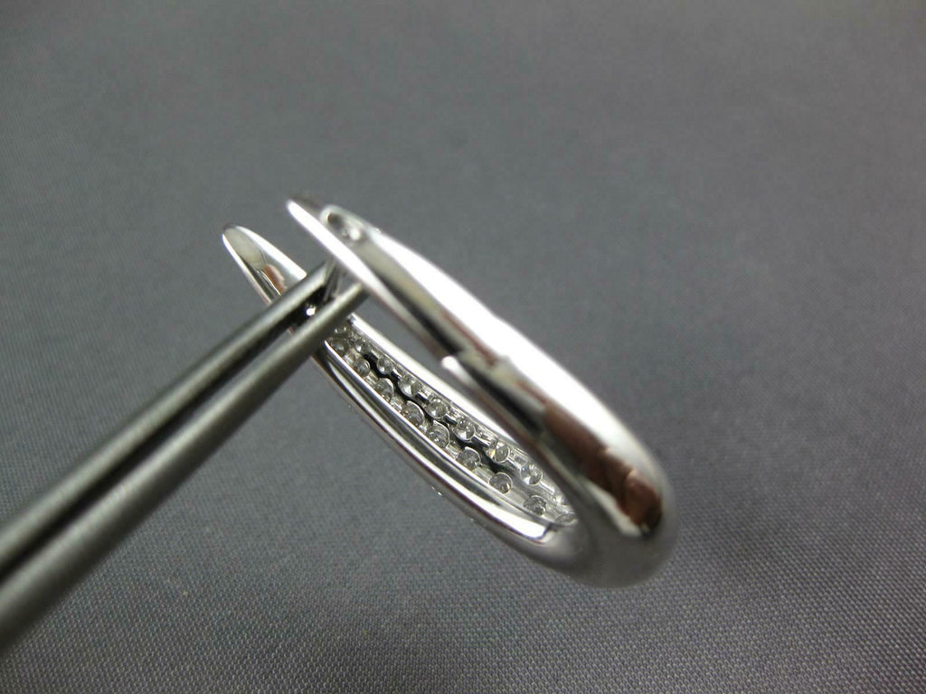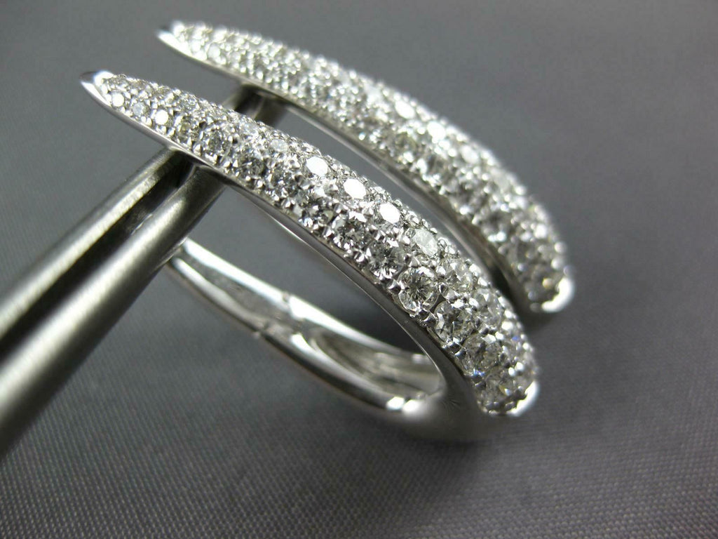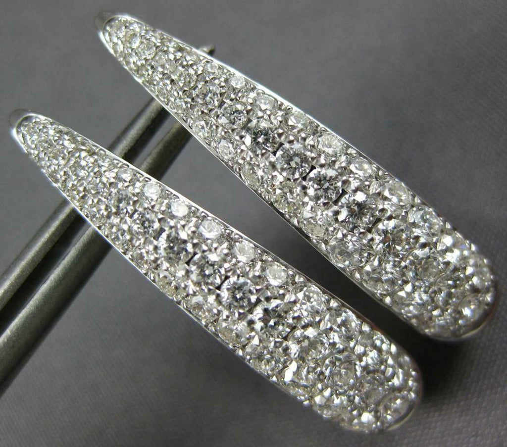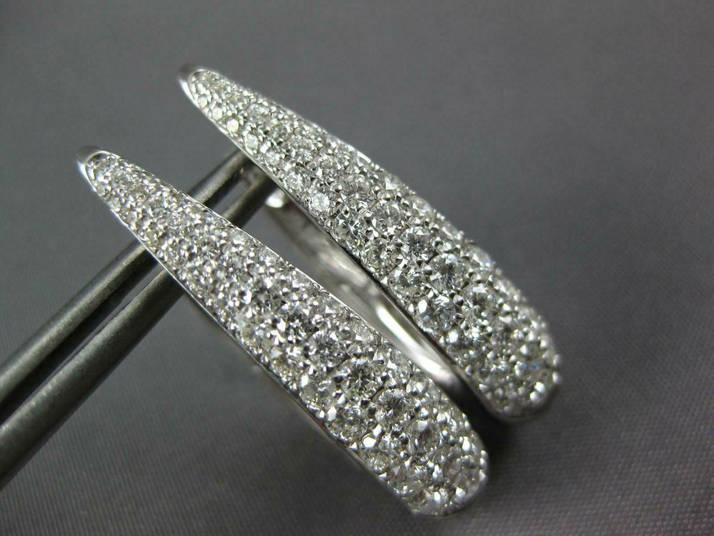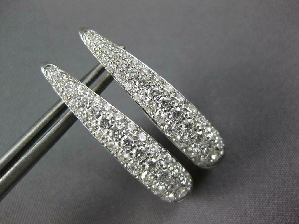 WIDE 1.64CT DIAMOND 18KT WHITE GOLD 3 ROW OVAL ELONGATED HUGGIE HANGING EARRINGS