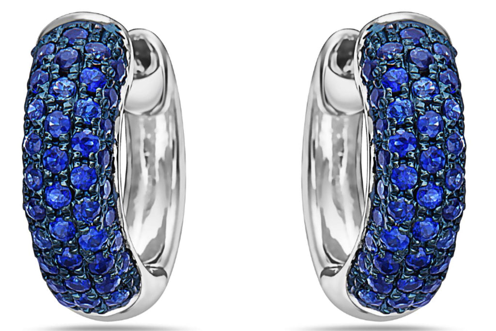 WIDE 1.52CT AAA SAPPHIRE 18KT WHITE GOLD 3D CLASSIC MULTI ROW HUGGIE EARRINGS