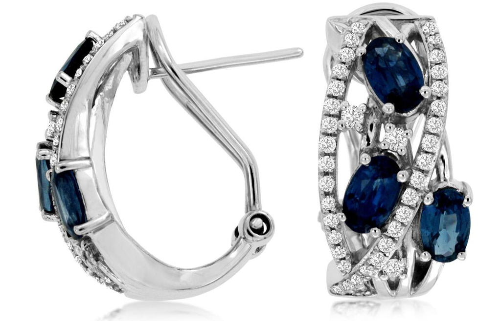 WIDE 1.88CT DIAMOND & AAA SAPPHIRE 14KT WHITE GOLD OVAL & ROUND CLIP ON EARRINGS