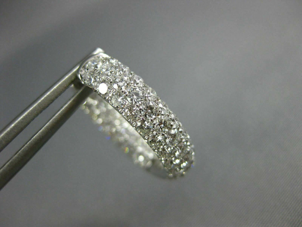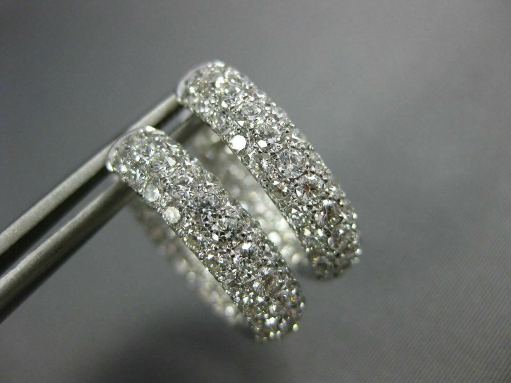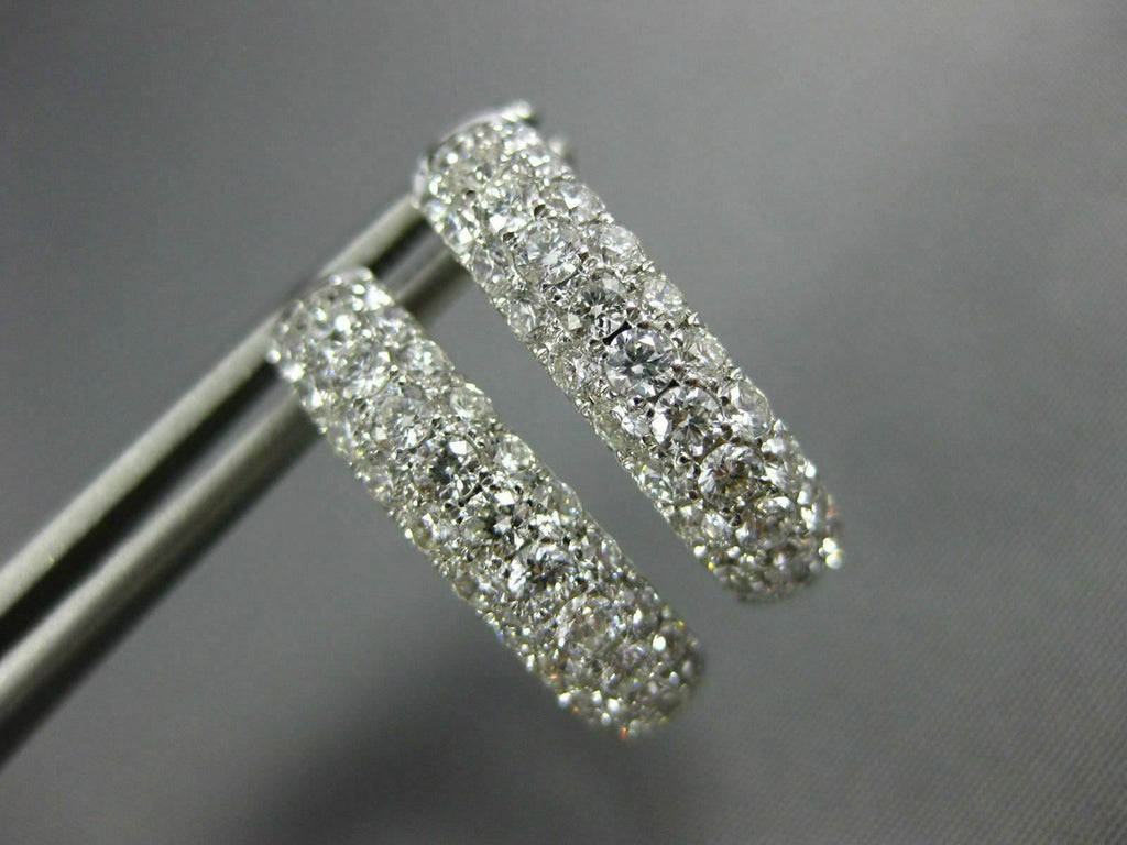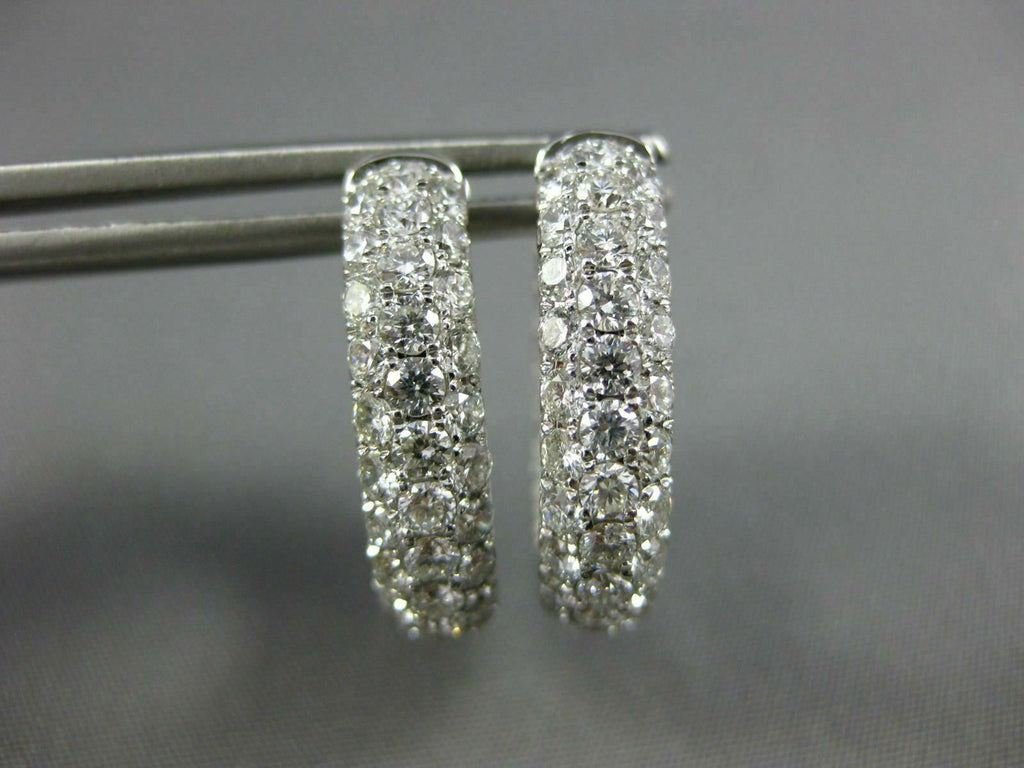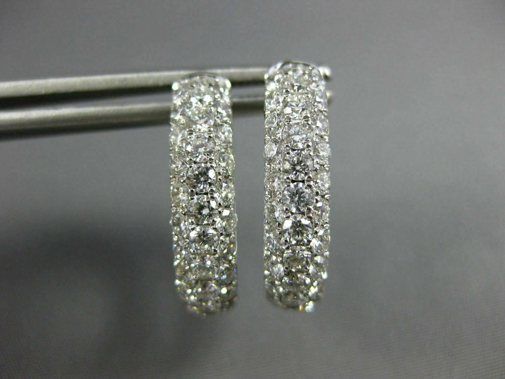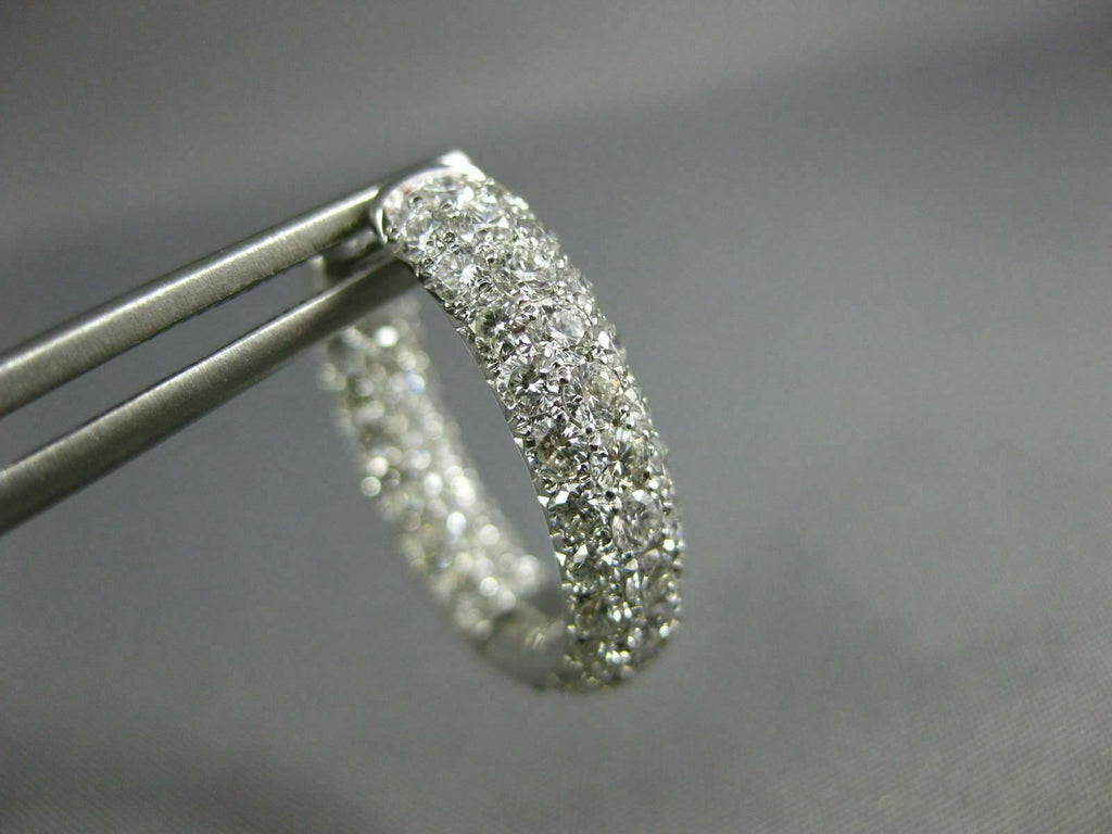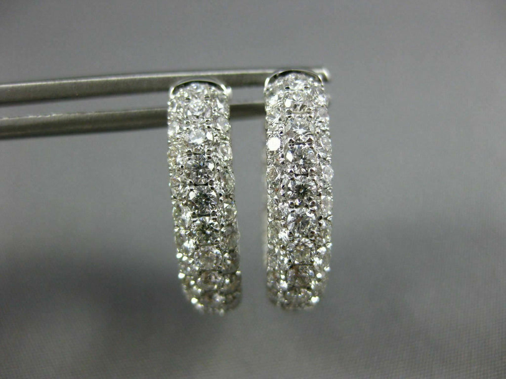 WIDE 18KT WHITE GOLD HOOP HUGGIE HANGING EARRINGS. 3D MULTI ROW INSIDE OUT DESIGN. DIAMONDS ARE F/G COLOR, VSSI CLARITY 3.03 CARATS. MEASURES 19mm X 17mm X 5mm. WRITTEN APPRAISAL AVAILABLE. COMES IN A PRESENTABLE GIFT BOX.