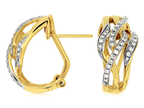 WIDE .26CT DIAMOND 14KT YELLOW GOLD CLASSIC MULTI LEAF CLIP ON HANGING EARRINGS