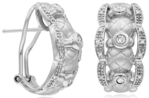 WIDE .27CT DIAMOND 18KT WHITE GOLD 3D MATTE & SHINY FLORAL CRISS CROSS EARRINGS