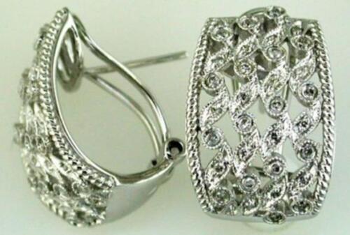 WIDE .36CT DIAMOND 14KT WHITE GOLD MULTI LEAF FILIGREE CLIP ON HANGING EARRINGS