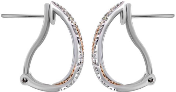 WIDE14KT WHITE AND ROSEGOLD CLIP ON HANGING EARRINGS. 3D OPEN FILIGREE DESIGN. DIAMONDS ARE F/G COLOR, VSSI CLARITY .45 CARATS. WRITTEN APPRAISAL AVAILABLE. COMES IN A PRESENTABLE GIFT BOX.