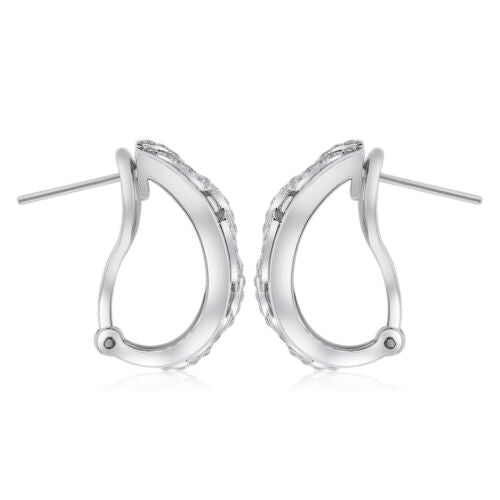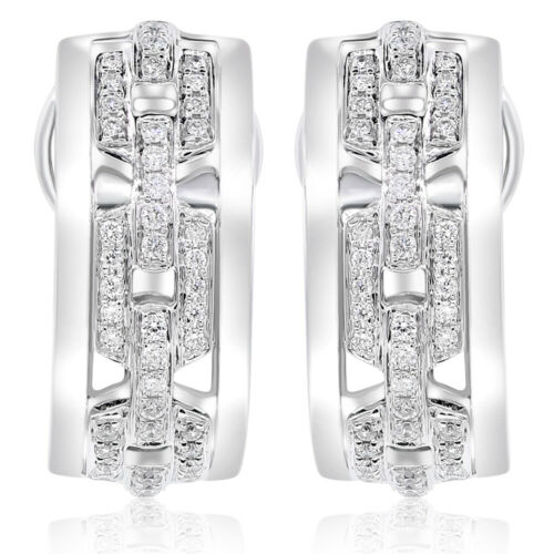 WIDE 14KT WHITE GOLD CLIP ON HANGING EARRINGS. 3D SQUARE LOVE KNOT MATTE AND SHINY UMBRELLA DESIGN. DIAMONDS ARE F/G COLOR, VSSI CLARITY .47 CARATS. WRITTEN APPRAISAL AVAILABLE. COMES IN A PRESENTABLE GIFT BOX.