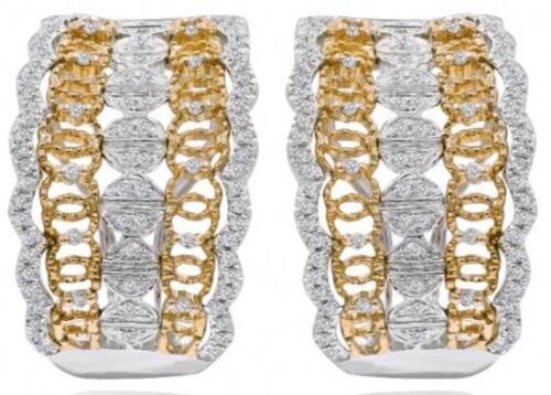 WIDE .51CT DIAMOND 14K 2 TONE GOLD OPEN FILIGREE FLORAL CLASSIC CLIP ON EARRINGS