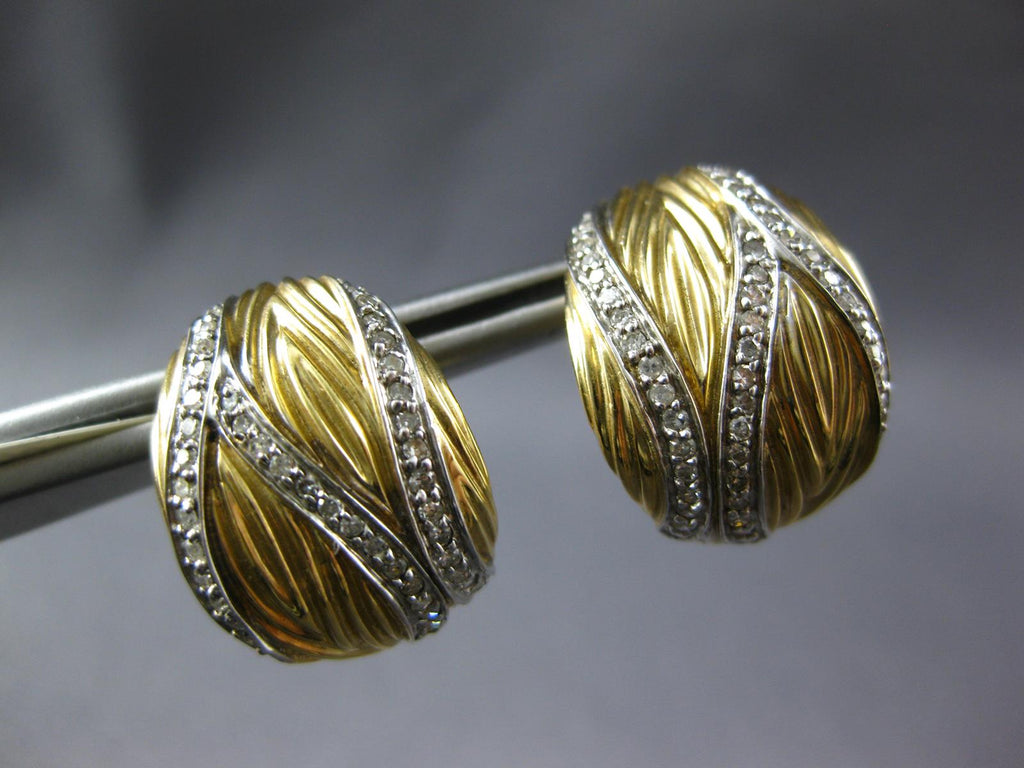 WIDE .52CT DIAMOND 14KT WHITE & YELLOW GOLD MULTI LEAF CLASSIC CLIP ON EARRINGS