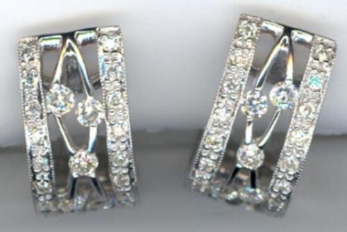 WIDE 14KT WHITE GOLD CLIP ON HANGING EARRINGS. 3D RECTANGULAR ETOILE DESIGN. DIAMONDS ARE F/G COLOR, VSSI CLARITY .57 CARATS. WRITTEN APPRAISAL AVAILABLE. COMES IN A PRESENTABLE GIFT BOX.